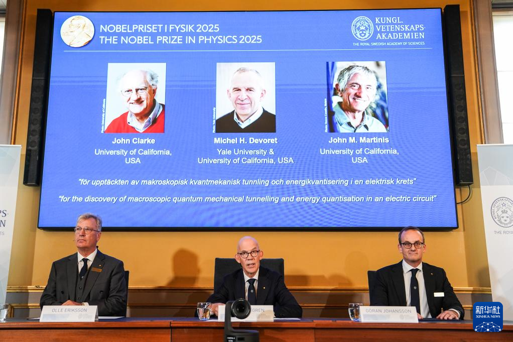 8)三名科学家约翰·克拉克、麦克·H·德沃雷特、约翰·M·马蒂尼获得2025年诺贝尔物理学奖。
